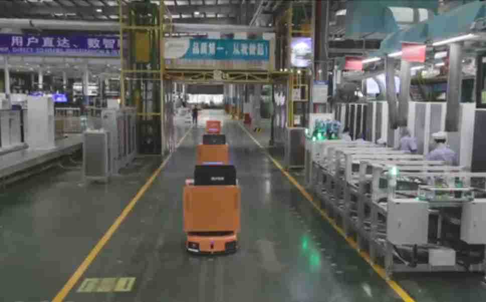 为车载冰箱物流配送打造的智能解决方案,,,包含产中物流通过潜伏举升AMR搬运至线边,,,产后成品物流智能仓储,,,流程包含产中物流智能齐套入库,,,,线边安灯叫料AMR智能配送至线边,,,成品入库、、、出库,,通过无人堆高车机器人,,,智能仓储管理替代人工作业管理,,,实现更高存储、、更高效率、、、、更具柔性化的解决方案。。。